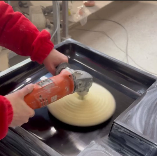 Виробляється механічна обробка: шліфування країв, полірування, свердління отворів для встановлення сифона та змішувача.